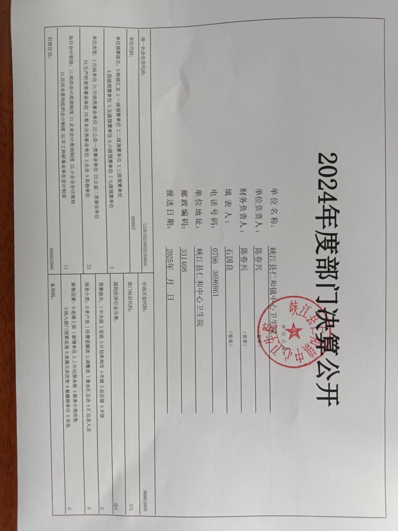 单位:峡江县仁和镇中心卫生院 2024 年度 金额单位:万元